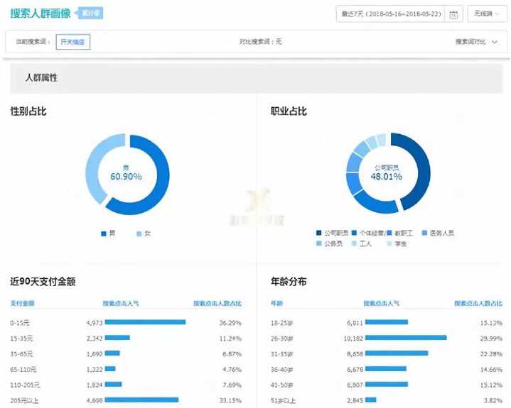 我們需要知道第一點,我們的產(chǎn)品到底想賣給誰,我們的目標(biāo)人群到底是誰,是男的,還是女的,年紀(jì)多大,支付金額怎么樣,在哪些城市受歡迎,等等,我們做淘寶的第一件事情就是需要解決這個問題。我們還是開關(guān)插座為例,我們可以看到,如圖: